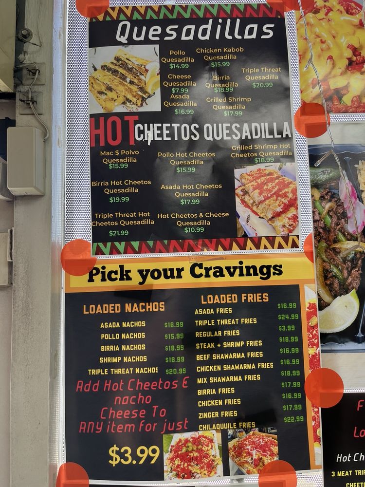 Rice Beans Onions Cilantro Sour Cream Hot Cheetos & Nacho CheeseRice Beans Onions Cilantro Sour Cream Hot Cheetos & Nacho Cheese